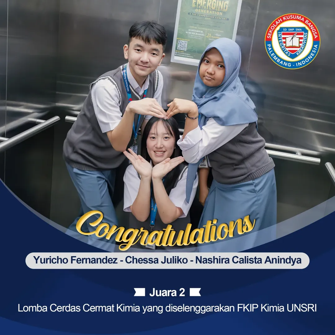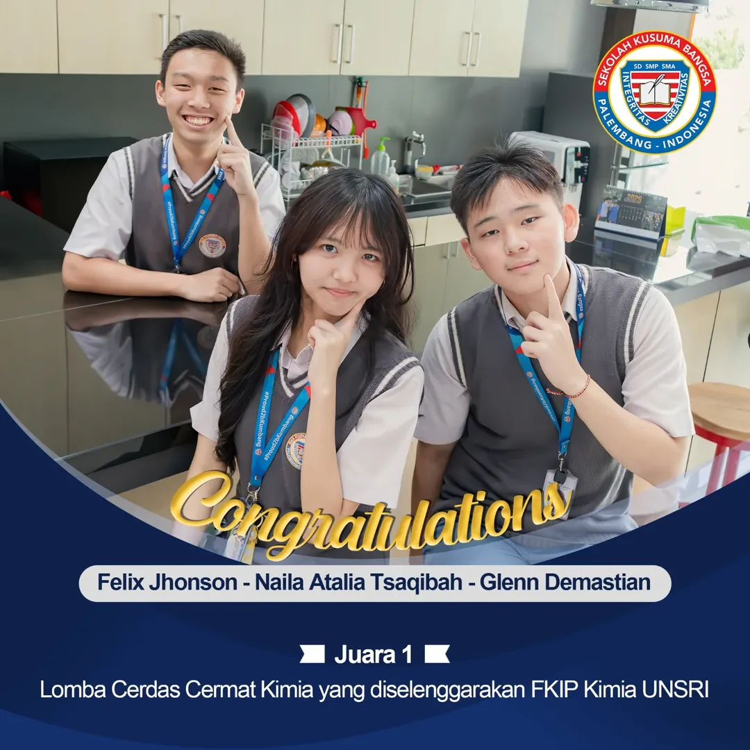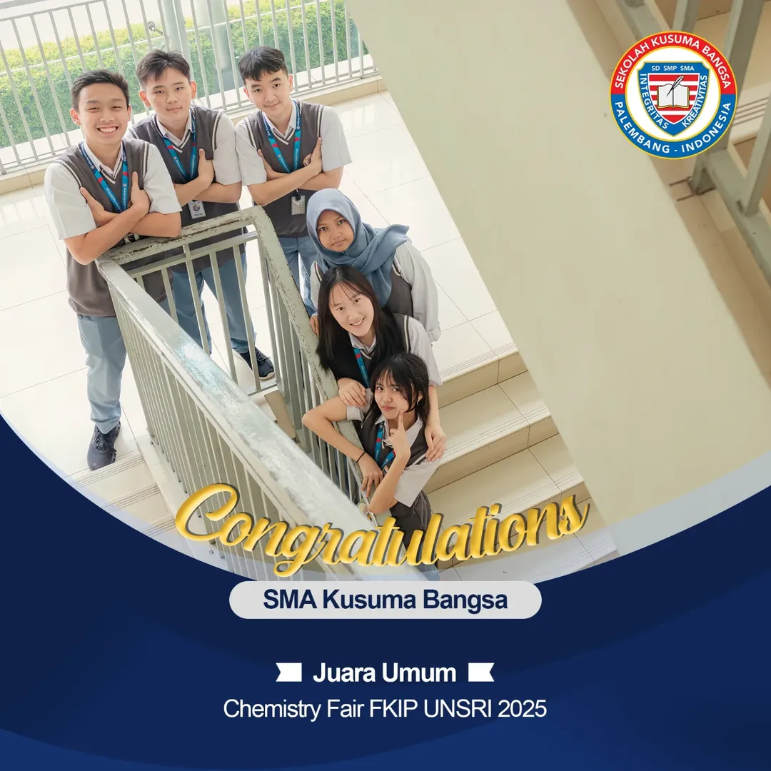 SMA Kusuma Bangsa berhasil mempertahankan gelar Juara Umum di Chemistry Fair FKIP UNSRI 2025 dan piala bergilirnya kembali ke sekolah kita! 🤩