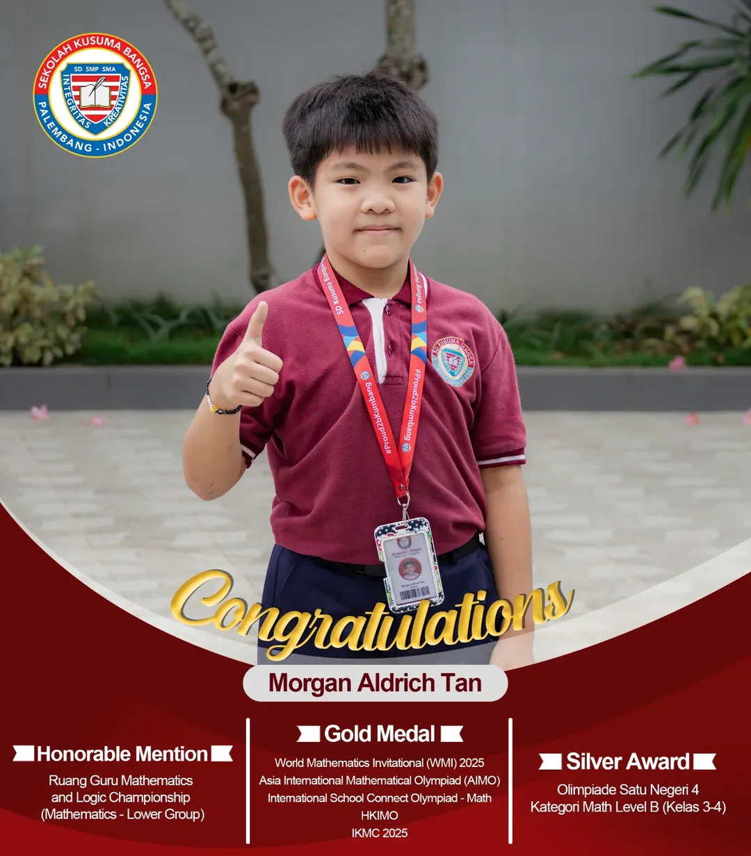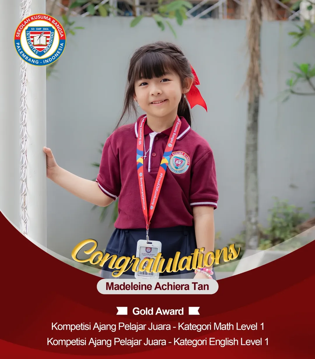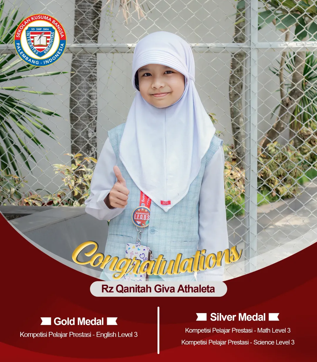 Congratulations to the students of SD Kusuma Bangsa who have won gold, silver, and bronze awards in various competitions!