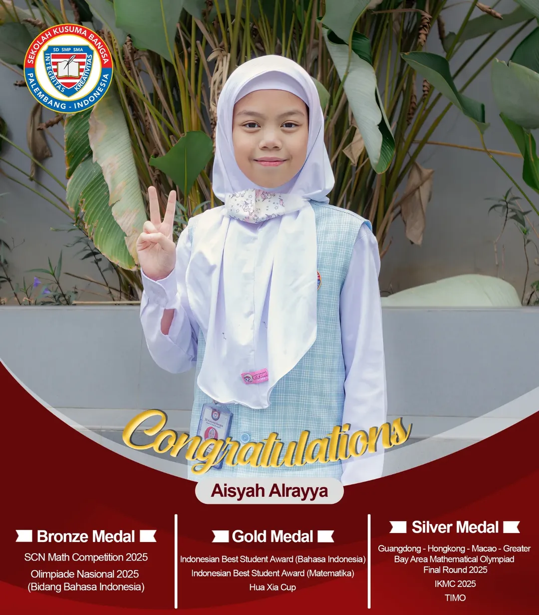 Selamat kepada murid-murid SD Kusuma Bangsa yang telah meraih penghargaan emas, perak, dan perunggu di berbagai ajang!